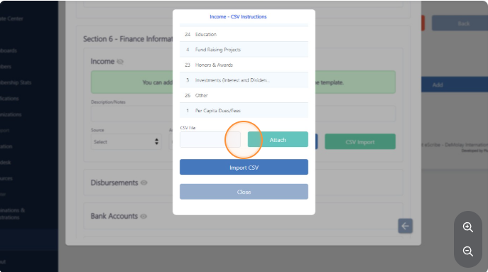 Tip! You can upload entries for your income and disbursement by using a CSV file. Follow the template instruction to accomplish that.